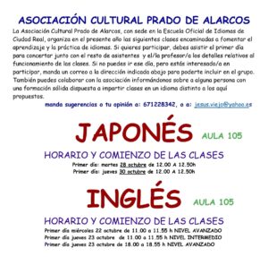 La Asociación Cultural Prado de Alarcos ofrece nuevos cursos de inglés y japonés. Ven al