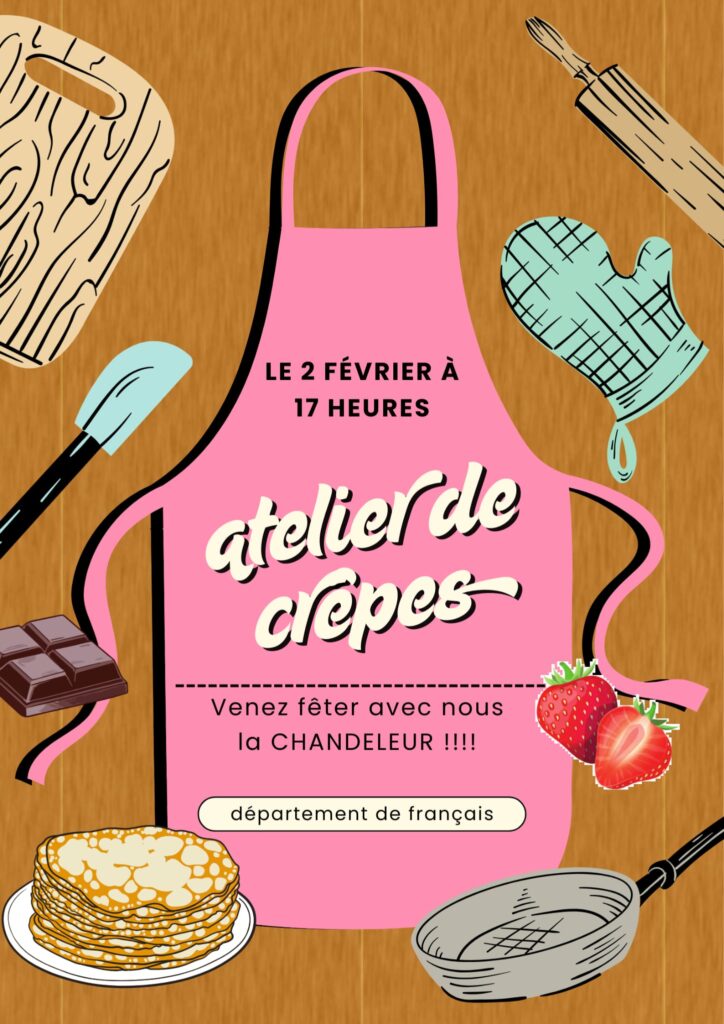 𝐀𝐭𝐞𝐥𝐢𝐞𝐫 𝐝𝐞 𝐜𝐫𝐞̂𝐩𝐞𝐬 El lunes 𝟐 𝐝𝐞 𝐟𝐞𝐛𝐫𝐞𝐫𝐨, a las 𝟏𝟕:𝟎𝟎 h, celebramos 𝐥𝐚 𝐂𝐡𝐚𝐧𝐝𝐞𝐥𝐞𝐮𝐫 de la forma más deliciosa 😋✨ Aprenderemos, cocinaremos y disfrutaremos de unas crêpes irresistibles mientras compartimos un rato diferente en francés. 📍 Actividad organizada por el 𝐃𝐞𝐩𝐚𝐫𝐭𝐚𝐦𝐞𝐧𝐭𝐨 𝐝𝐞 𝐅𝐫𝐚𝐧𝐜𝐞́𝐬. ¡No te la pierdas!