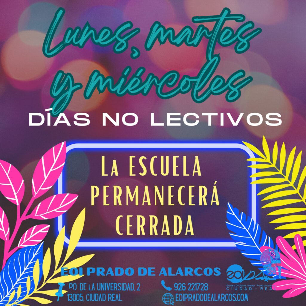 La Escuela permanecerá cerrada el lunes 16, martes 17 y miércoles 18 de febrero. Retomamos la actividad normal el próximo jueves, día 19.