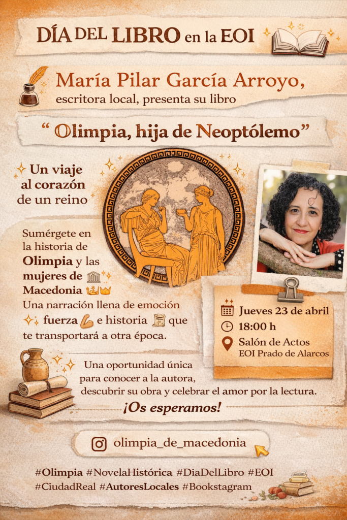 📚 Día del Libro en la EOI Prado de Alarcos Con motivo de la celebración del Día del Libro, la EOI Prado de Alarcos tiene el placer de acoger la presentación del libro: “Olimpia, hija de Neoptólemo” La autora María Pilar García Arroyo, escritora local, nos acompañará para compartir su obra y acercarnos a una […]