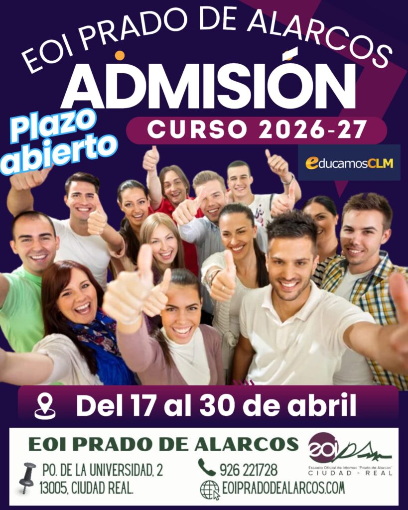 Se ha publicado en el DOCM la Resolución de 16 de abril del 2026 de Admisión en las Escuelas Oficiales de Idiomas.