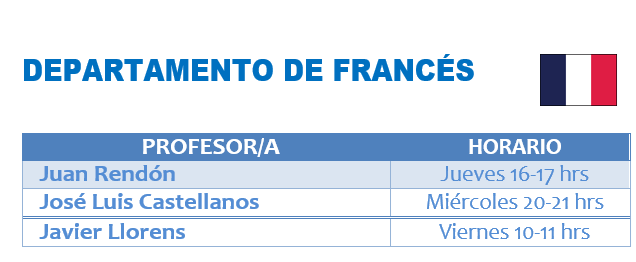 Todos los profesores del dpto. de francés disponen de aulas virtuales en el entorno EducamosCLM. Podéis acceder con vuestro usuario y contraseña y desde ahí seleccionar el aula correspondiente. Si queréis contactar con vuestro profesor debéis utilizar el correo que aparece en la imagen inferior.