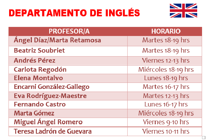 Todos los profesores del dpto. de inglés disponen de aulas virtuales en el entorno EducamosCLM. Podéis acceder con vuestro usuario y contraseña y desde ahí seleccionar el aula correspondiente. Si queréis contactar con vuestro profesor/a debéis utilizar el correo que aparece en la imagen inferior.